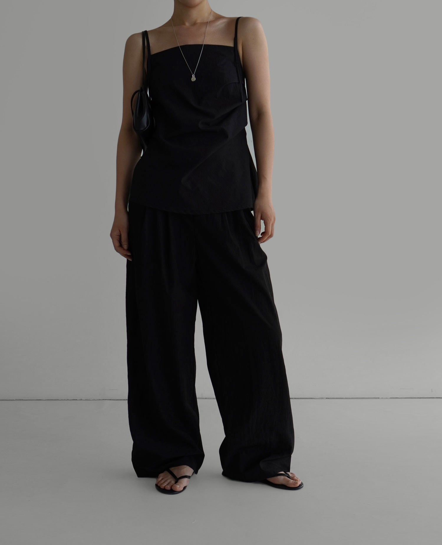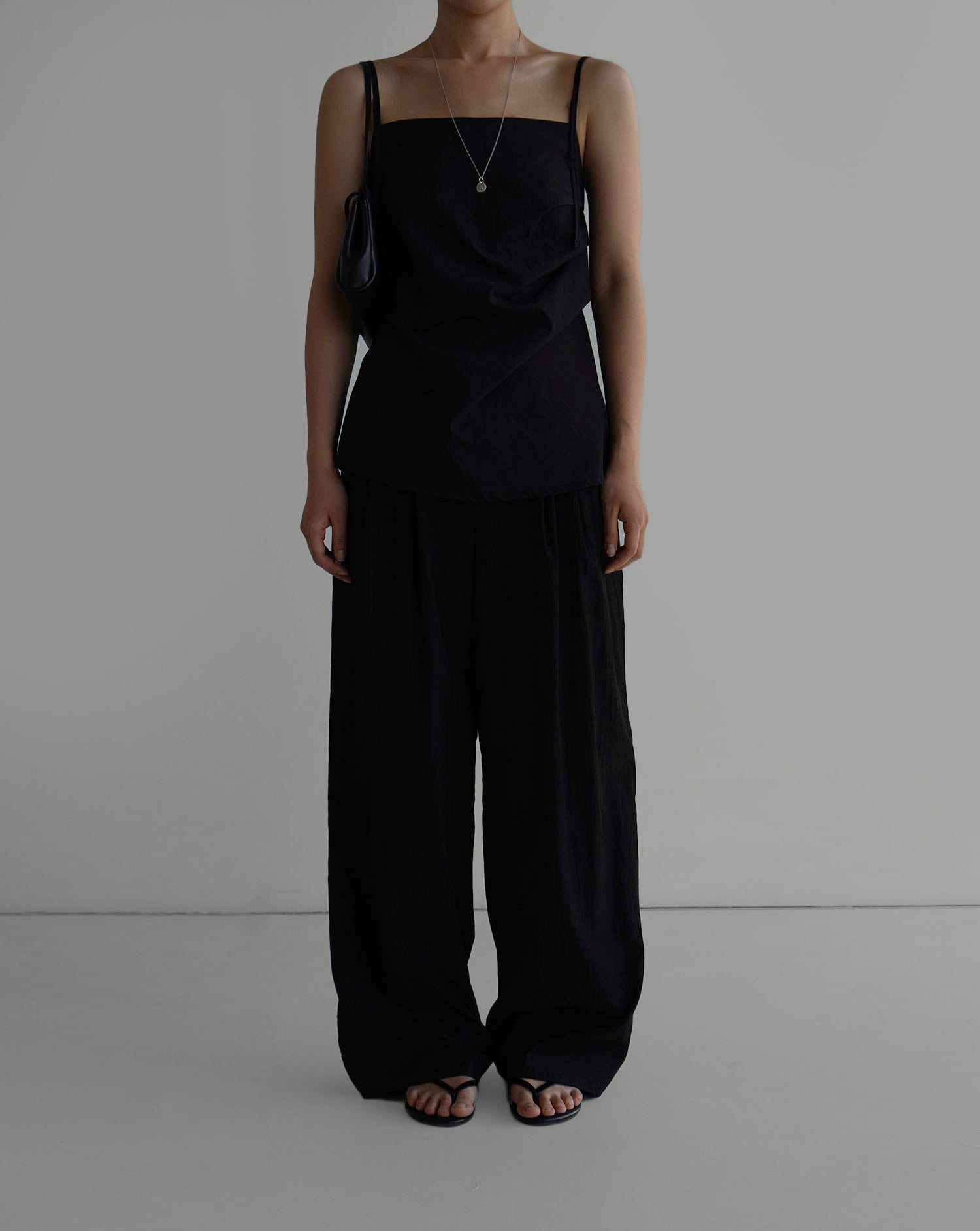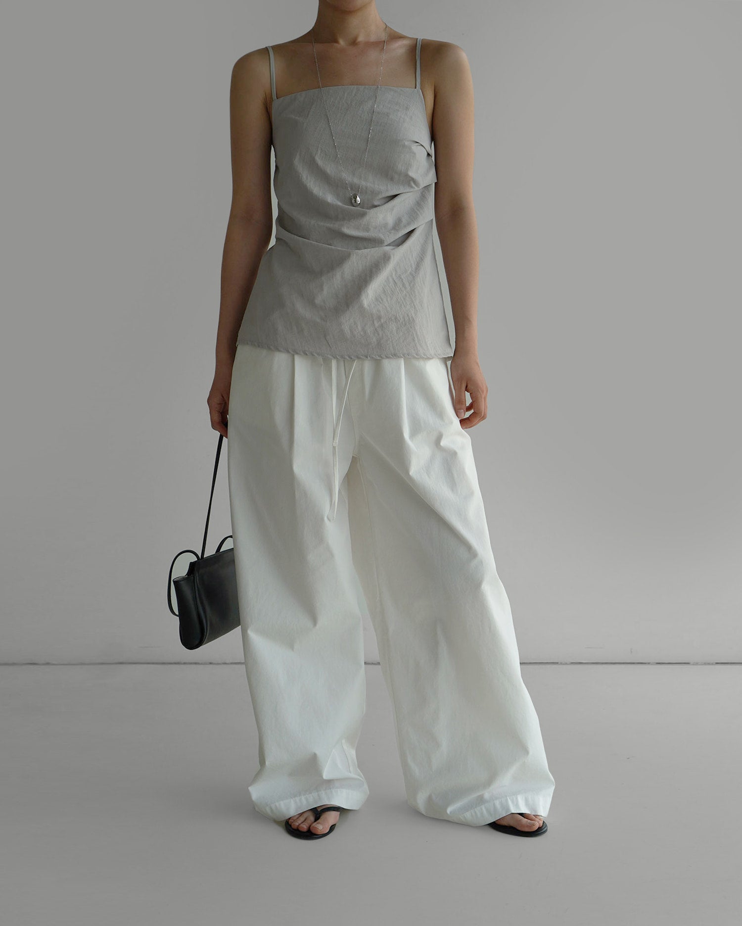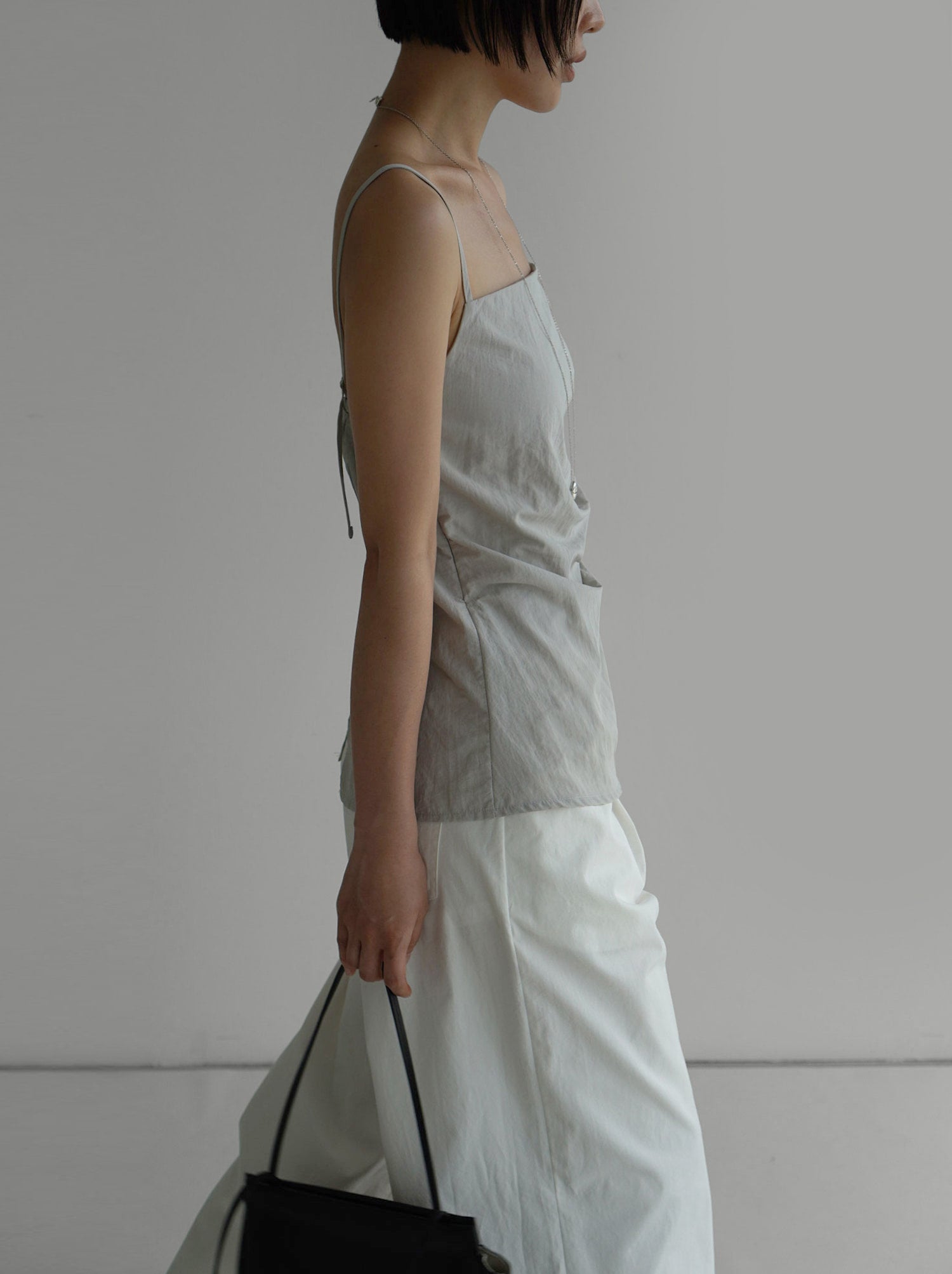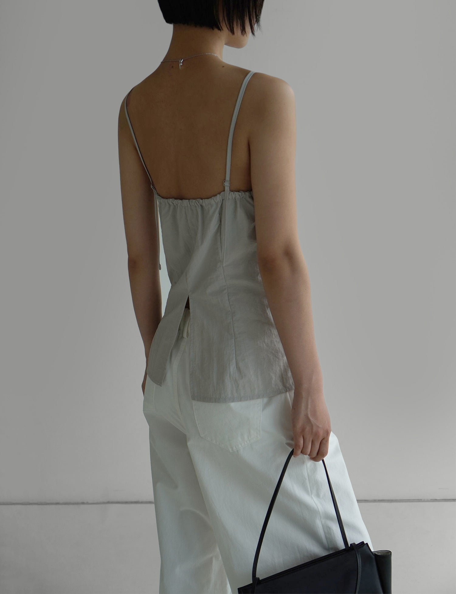 The clean neckline and slim straps highlight the shoulders beautifully, while soft shirring along the front creates a gentle, feminine silhouette. The back buckle strap and elastic band ensure a comfortable, adjustable fit for any body shape. A back slit adds a sense of ease and movement, while the concealed side zipper keeps the silhouette sleek. Pairs effortlessly with any warm-weather outfits.
