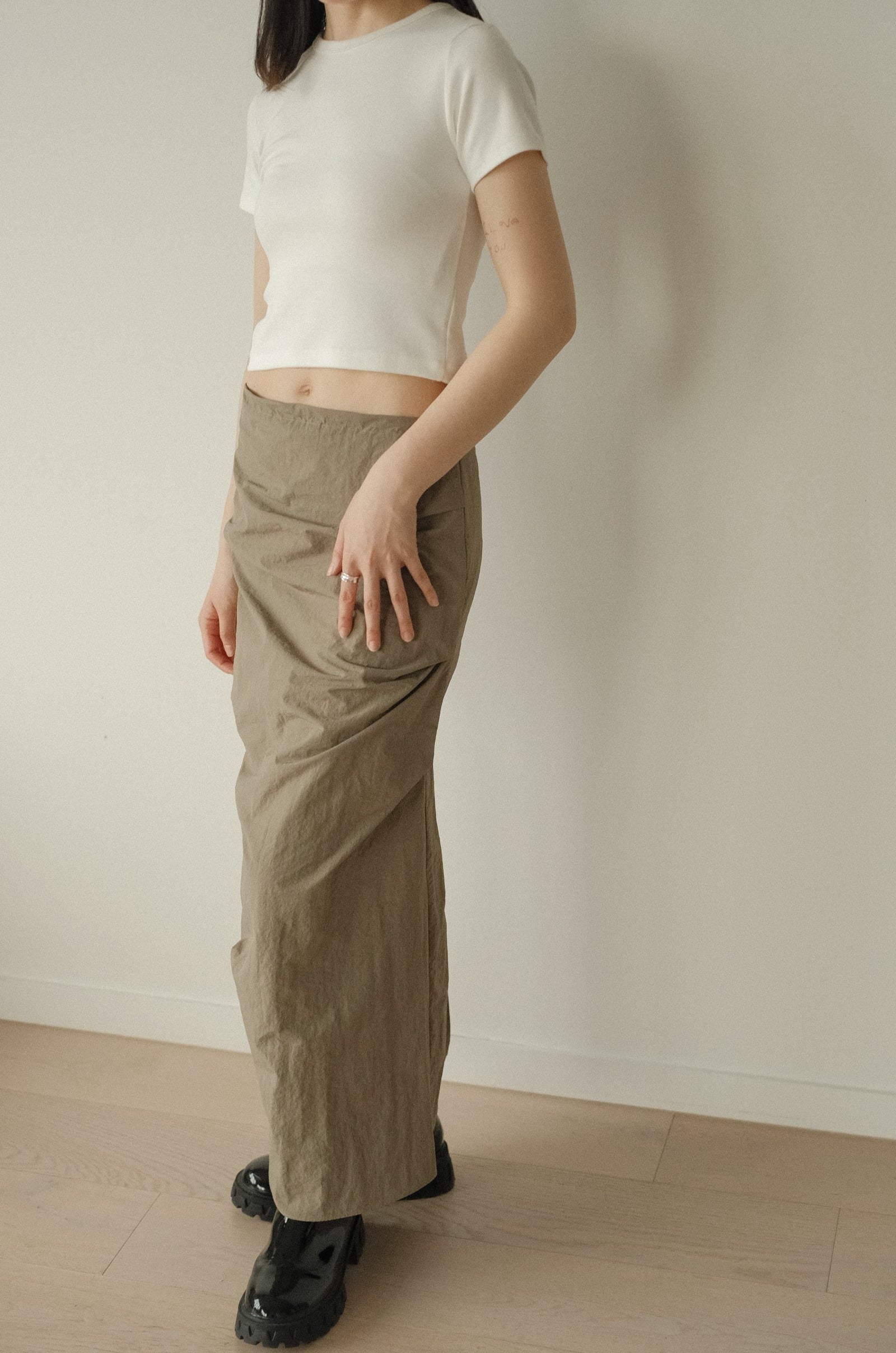 A skirt that we had been dying to launch, but had to go through 5 revisions to get the perfect silhouette. Our favourite designs of this piece includes the gorgeous colour, elastic drawstring cord at waist, exaggerated side pleats, high back vent, and weather-resistant fabric.