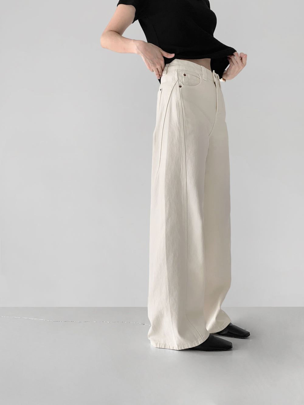 Let us introduce you to a pair of jeans with a stylish fit and sophisticated twisted seam design. Despite being denim, the material feels soft without looking stiff, and is comfortable to wear. The semi-high waist closure holds your waist well, and the wide leg falls beautifully from your hip. There is also a thin layer of inner fleece, making it an ideal piece for the cooler months.