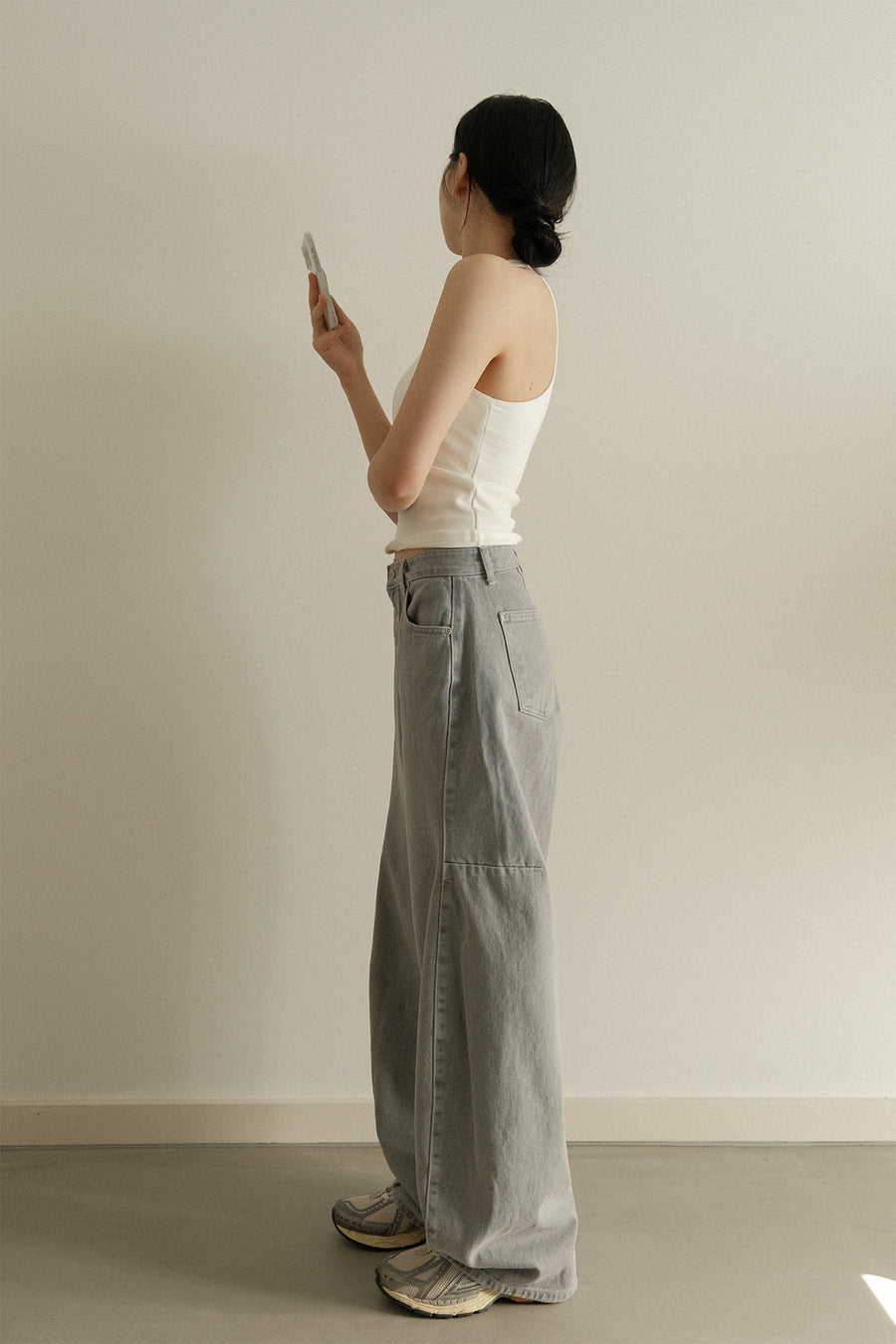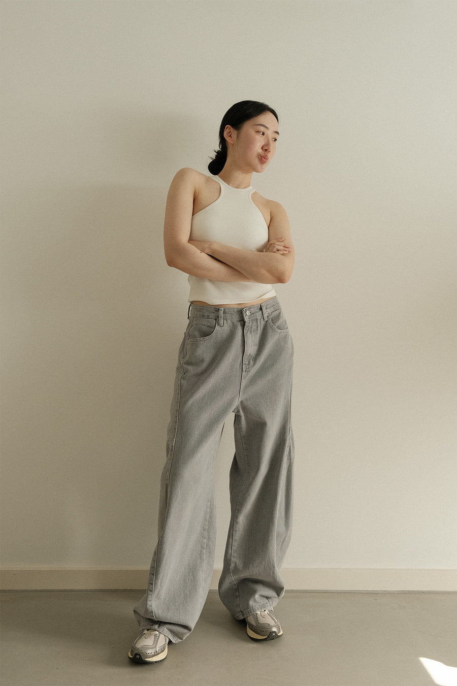 One of our favourite pieces from this collection, these high quality Cocoon Jeans feature a wide, slightly slouchy fit that sits just right at high-to-mid waist. It is definitely not your average denim jeans, as it features asymmetrical side pleats, minimal pockets and flattering hip design. We especially love the special wash colour.
